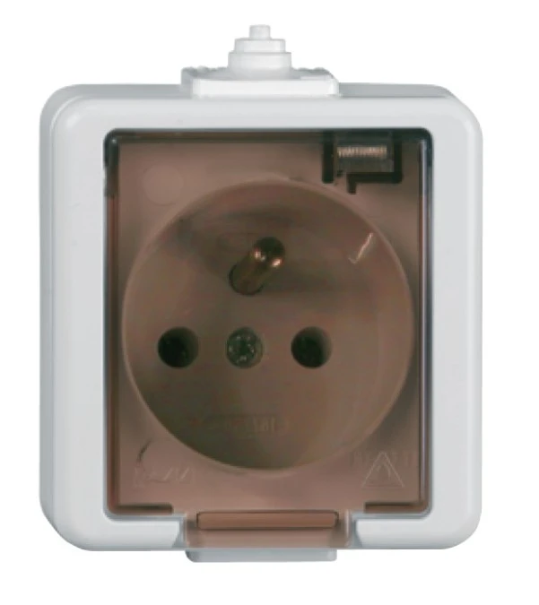 1. Jantar gniazdo pojedyncze 2P+Z bryzgoodporne z pokrywą dymną kolor biały GNT-16J L BI 10.26