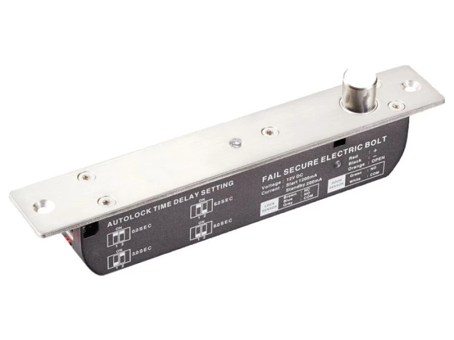 Elektrozamek trzpieniowy rewersyjny siła trzymania 2000 kg, sygnalizacja stanu drzwi i zamknięcia, LED, zwłoka czasowa, 12V DC