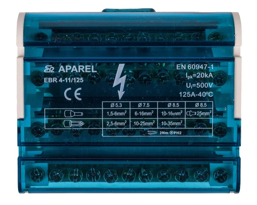 9. Blok listew rozdzielczych 4-biegunowy 125A EBR 4-11/125 R33RA-02020200201 45.46