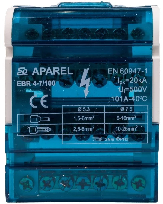 2. Blok listew rozdzielczych 4-biegunowy 100A EBR 4-7/100 R33RA-02020200101 32.89
