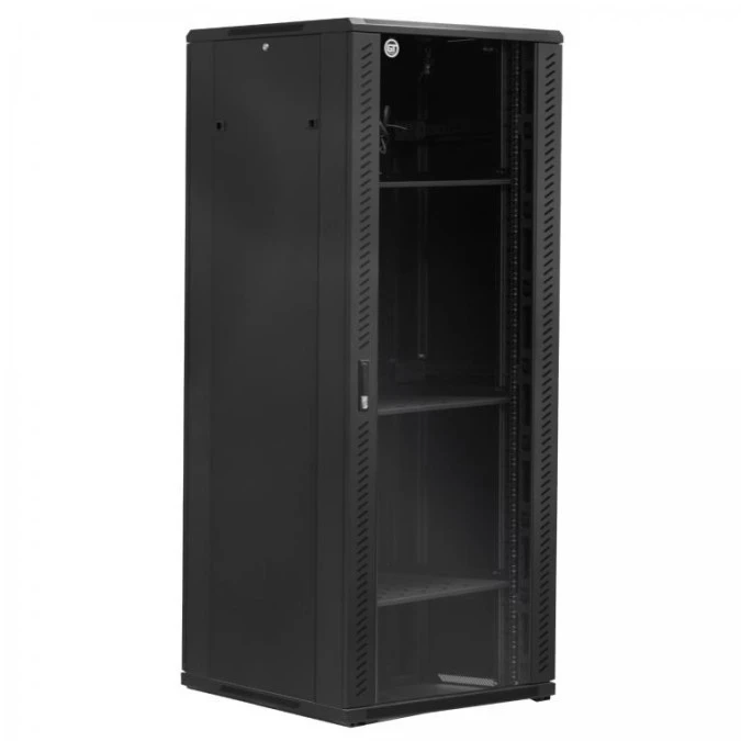 Szafa stojąca RACK 19" 42U 800x800mm drzwi szklane wyposażona czarna GT