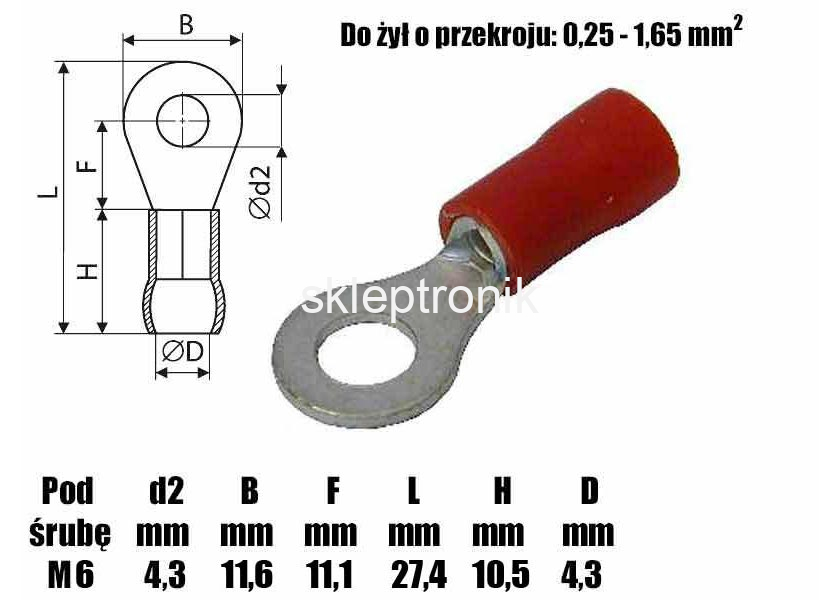 8. Konektor M6 0,5-1,5mm czerwony 10szt 6.50