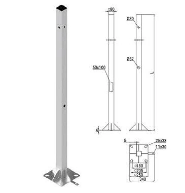 SKAM1/4 słup kwadratowy 4M rozstaw 180X180 - 205X205 fundament FP1, FP2, FP3