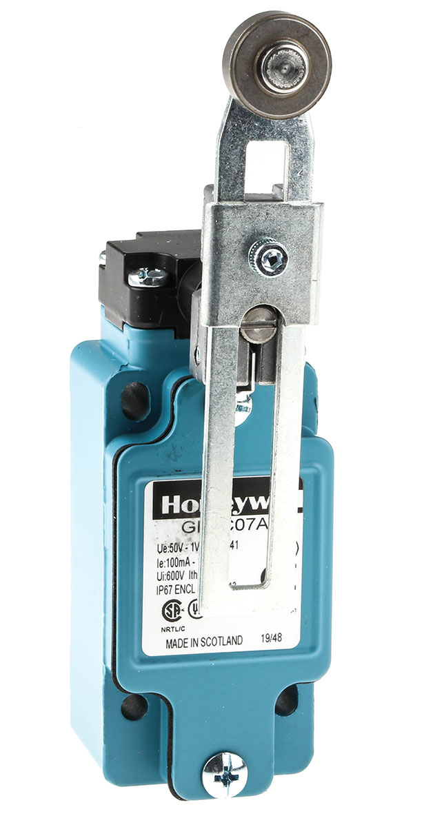 Wyłącznik krańcowy typ Regulowana dźwignia z rolką Honeywell NO/NC Działanie natychmiastowe 100mA 50V IP67