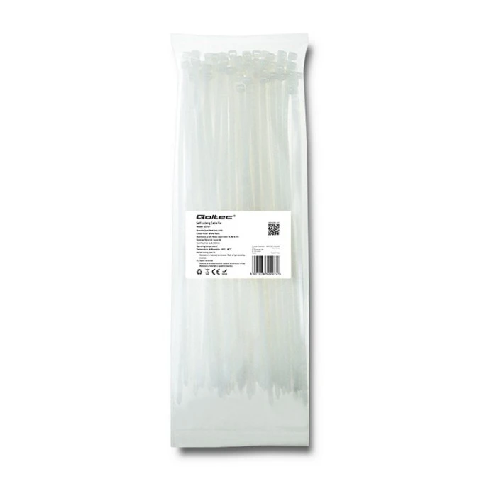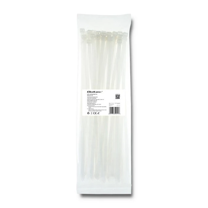 Qoltec Opaski zaciskowe Trytki kablowe 4.8*300mm 100 szt. Nylon66 UV Białe