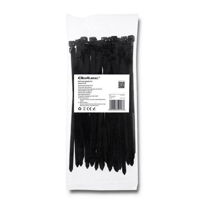 Qoltec Opaski zaciskowe Trytki kablowe 7.2*200mm 50 szt. Nylon66 UV Czarne