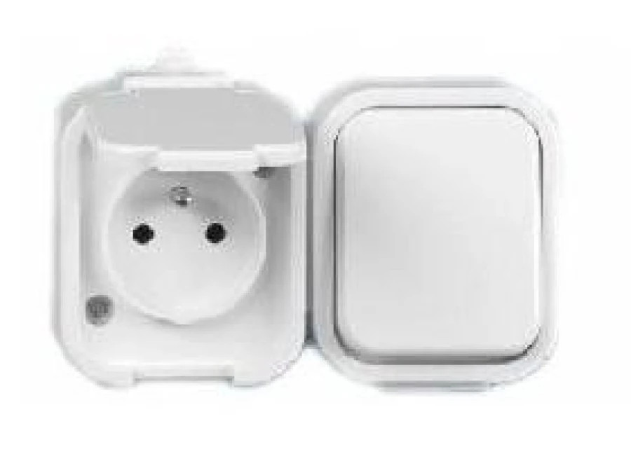 13. B2 IP54 Gniazdo pojedyncze + włącznik n/t 2p+Z GWN-B2 biały ABEX 21.37