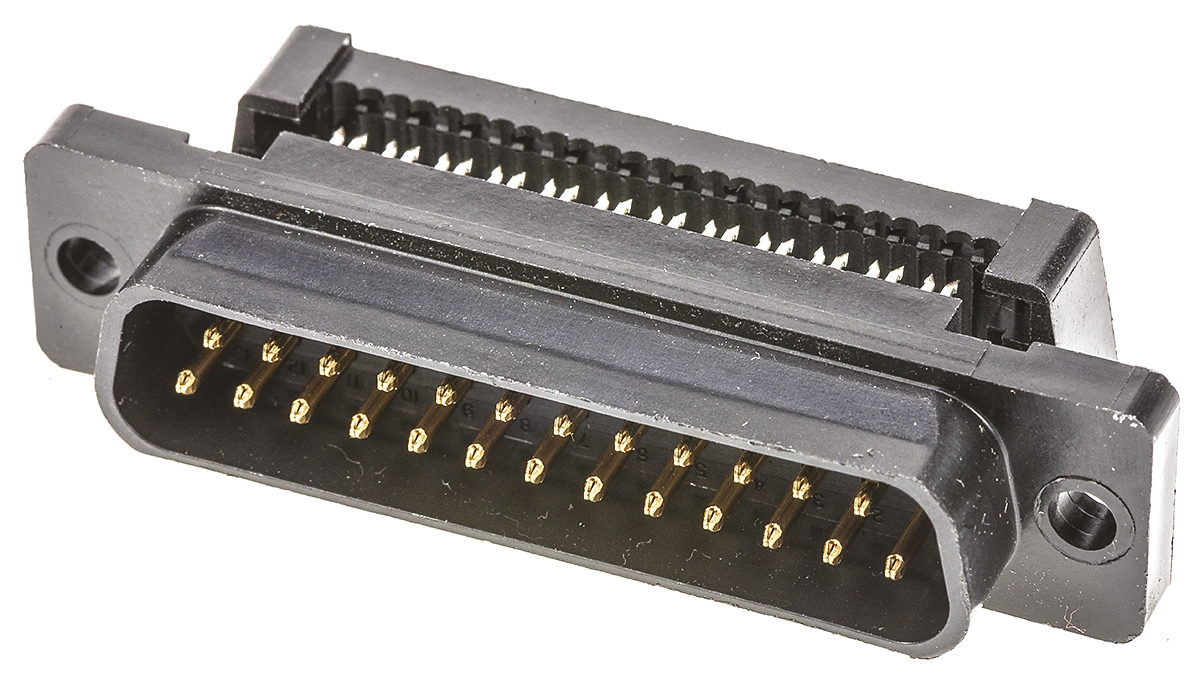 15. Złącze D-Sub 25-pinowe Męski Kąt Proste Montaż na kablu raster 2.77mm Złoto na niklu 63.50