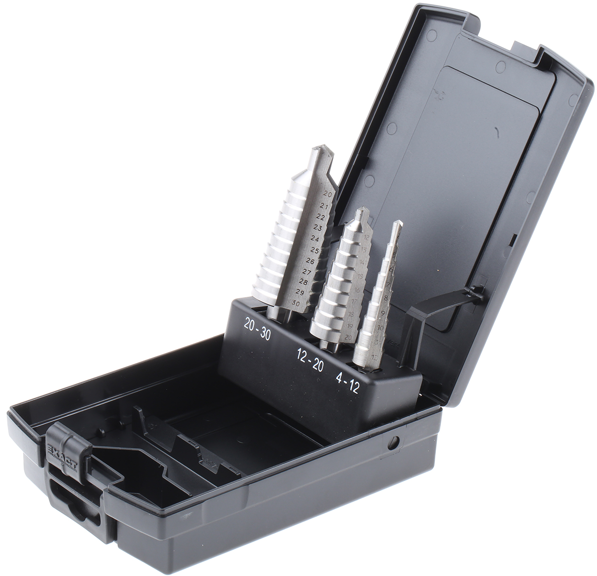 1. Zestaw wierteł RS PRO Wiertło stożkowe HSS 3 szt. 377.24