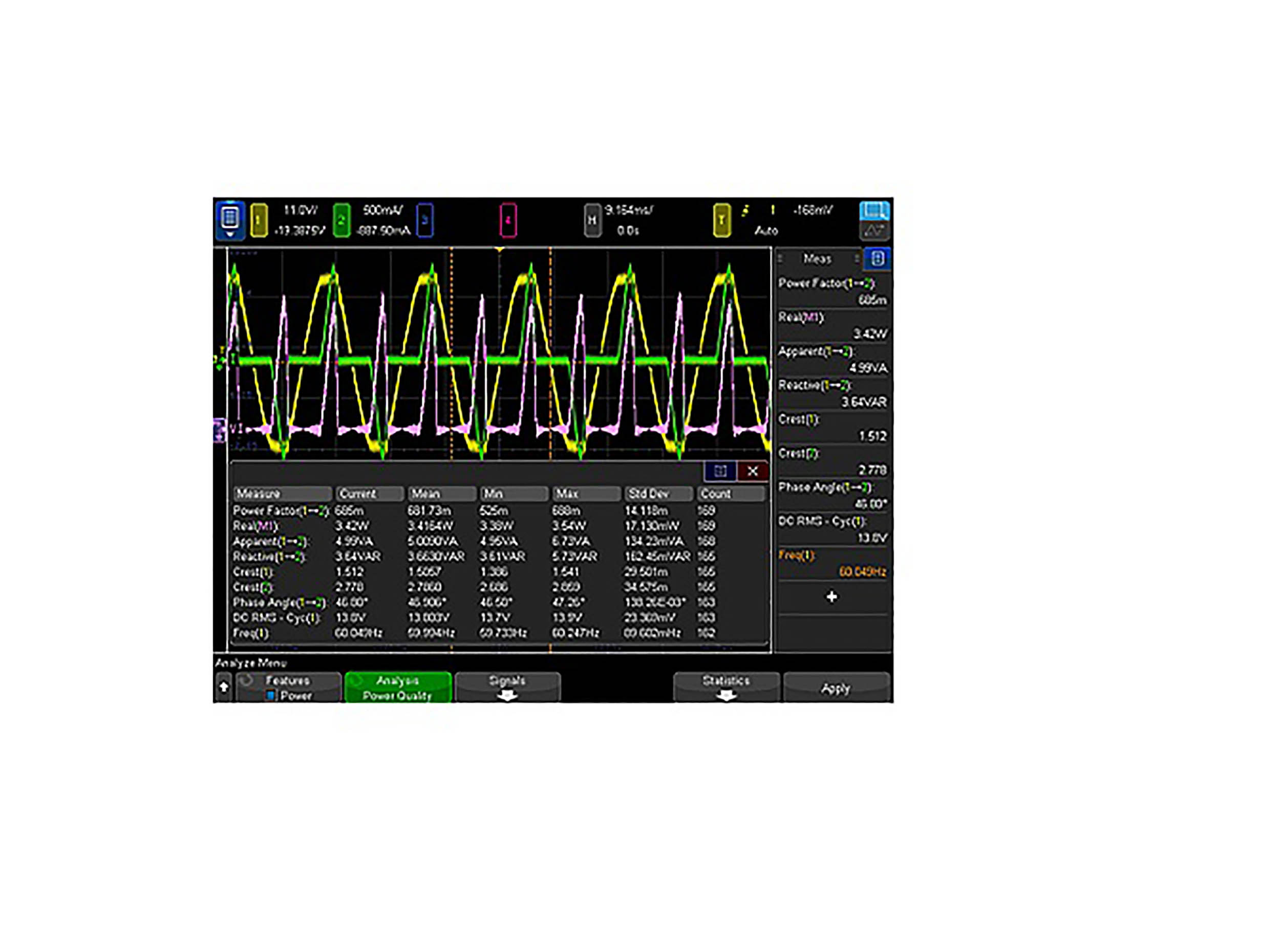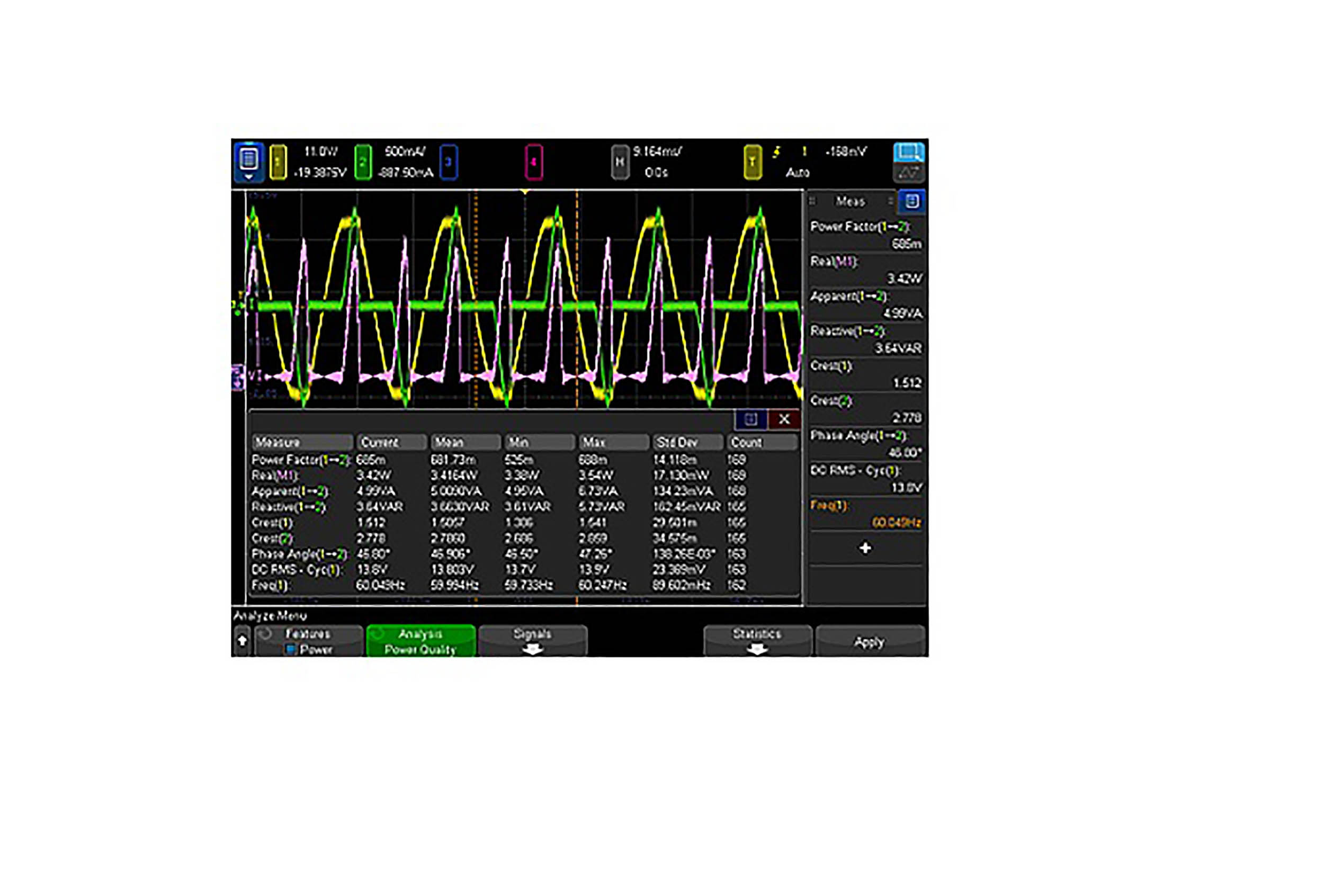 Oprogramowanie do oscyloskopów, Pomiary charakterystyki zasilacza, 6000 A, 7.4