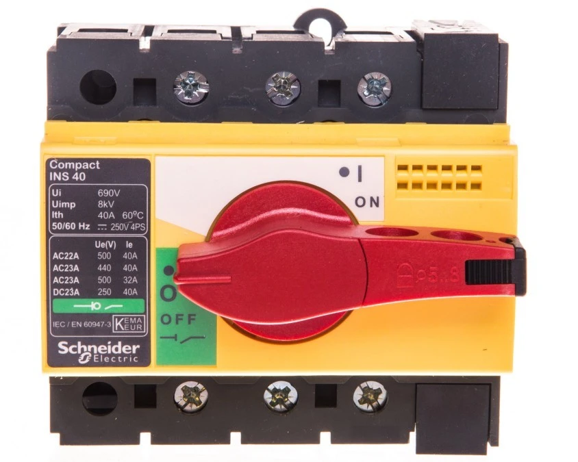 Rozłącznik izolacyjny 3P 40A dzwignia żółto-czerwona INS40 28916