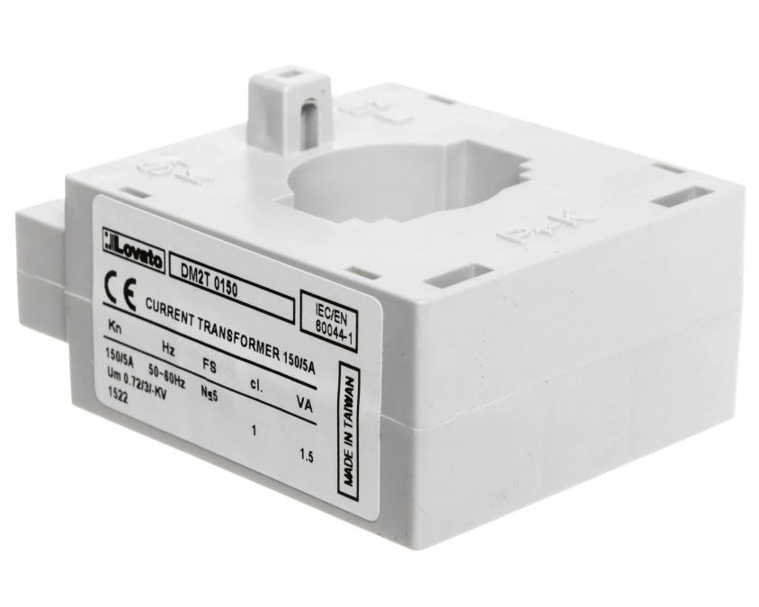 Przekładnik prądowy 150/5A, klasa 1, na przewód fi 23mm, na szynę 30x10mm, 25x12,5mm, 20x15mm DM2T0150