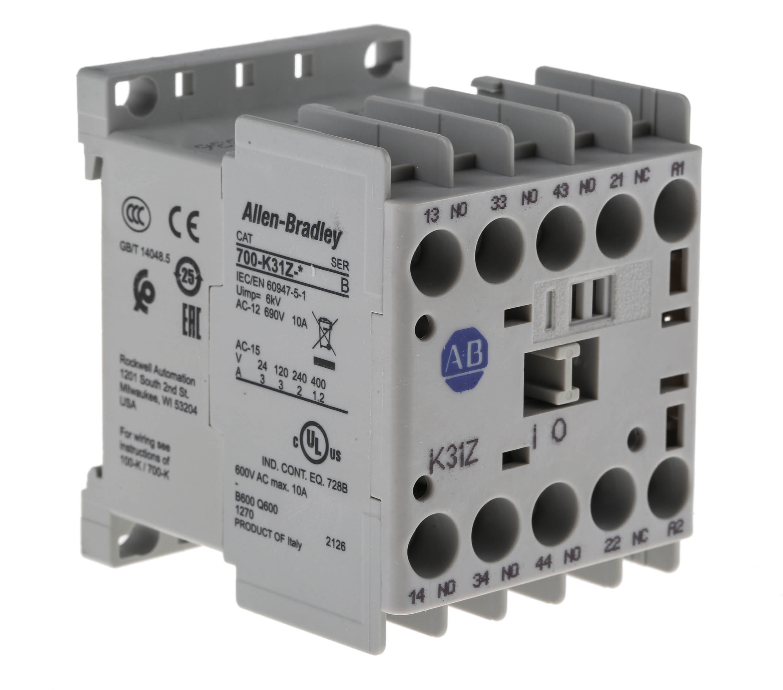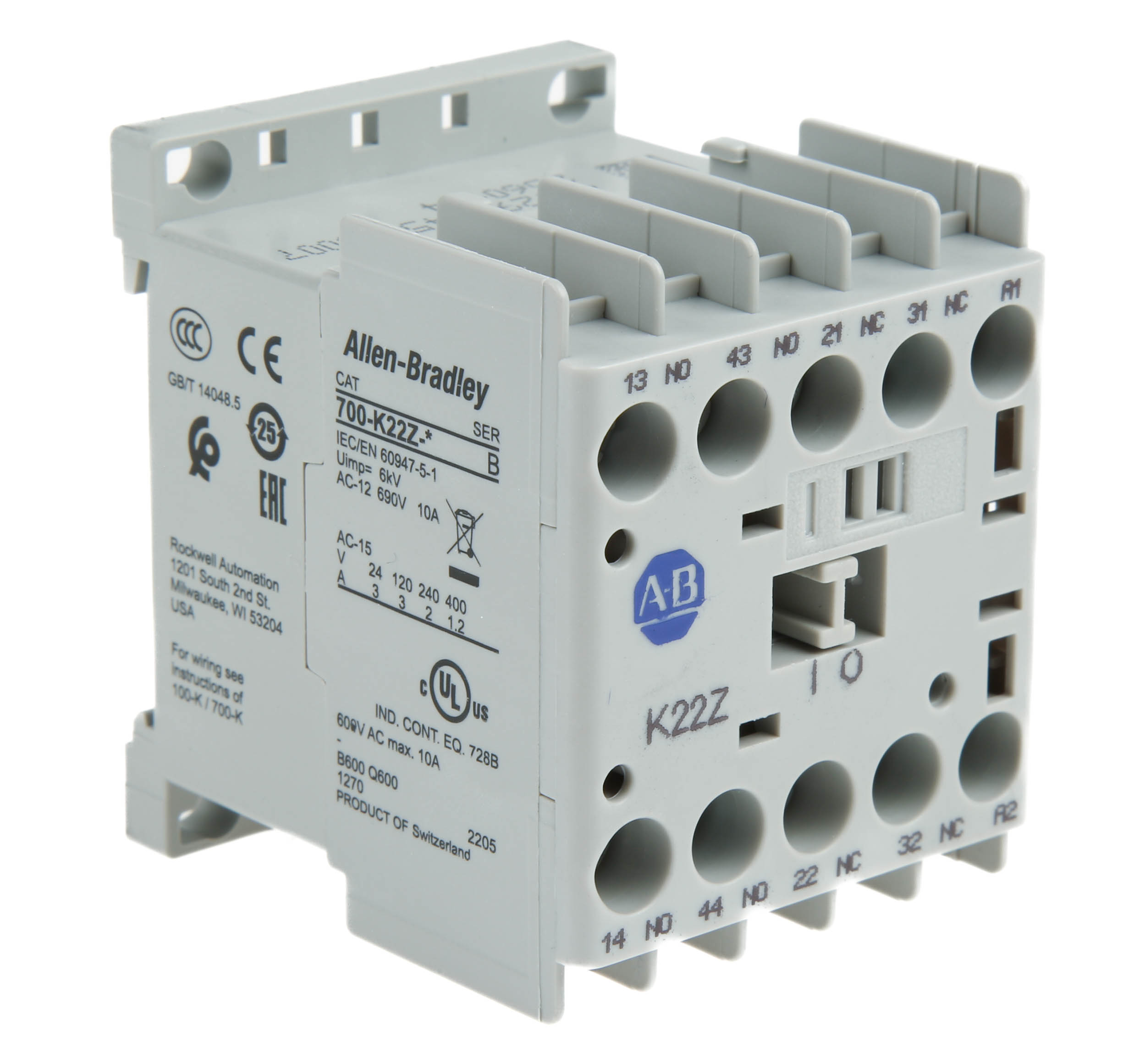 Stycznik 230 V ac Allen Bradley styki: 4 10 A 2NC Montaż na szynie DIN, montaż na płycie Śruba 700-K22Z-KF