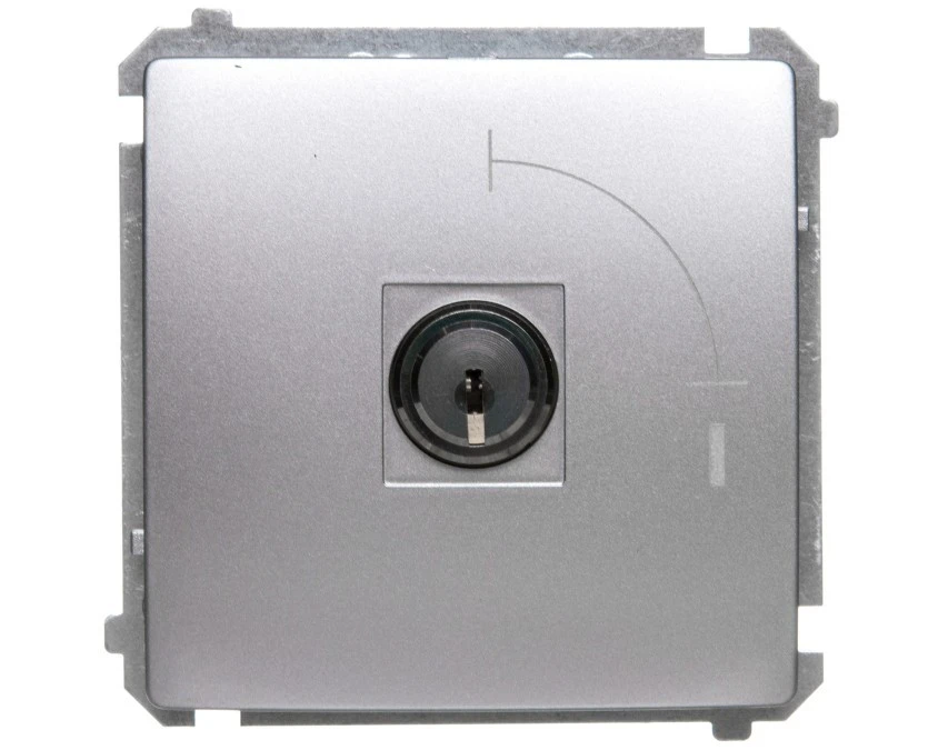 SIMON BASIC Wyłącznik pojedynczy z kluczem 2 pozycyjny „0-I” styk N/O możliwość wyjęcia klucza w każdej pozycji srebrny mat BMW1