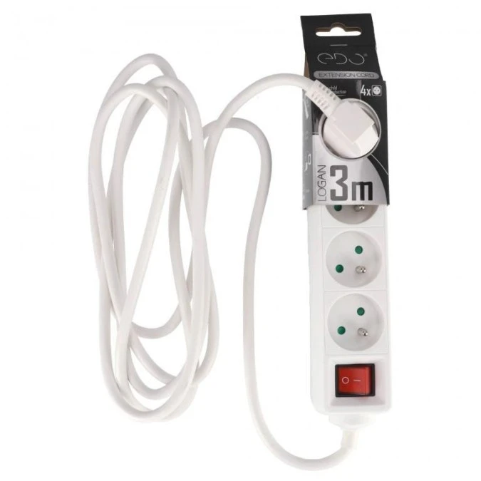 3. Przedłużacz domowy przenośny LOGAN White 4 - krotny z uziemieniem 3m z włącznikiem EDO777563 EDO 30.91