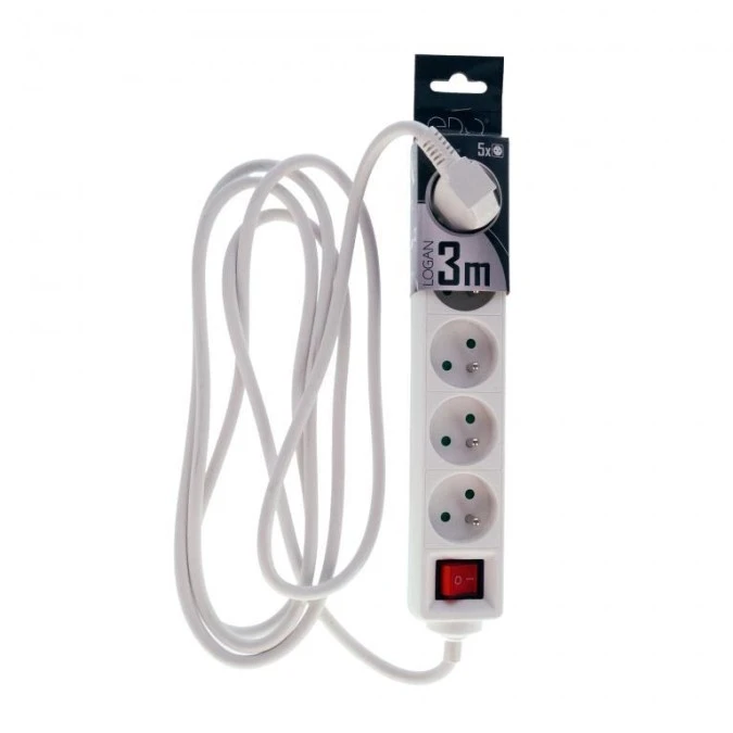 Przedłużacz mieszkaniowy LOGAN White 5-krotny z/u 3m z włącznikiem EDO777672