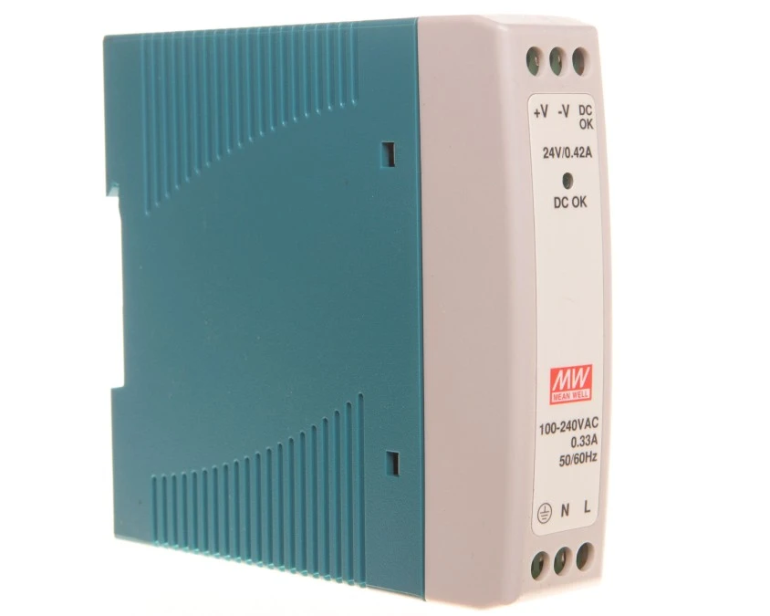 14. Zasilacz Mean Well MDR-10-24 na szynę DIN - 24V/0,42A/10W 65.00