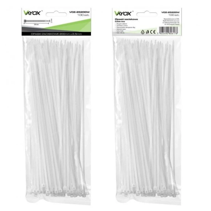 Opaski Zaciskowe 2,5 Mm / 200 Mm Białe 100 Szt. Voz-25200W Vayox