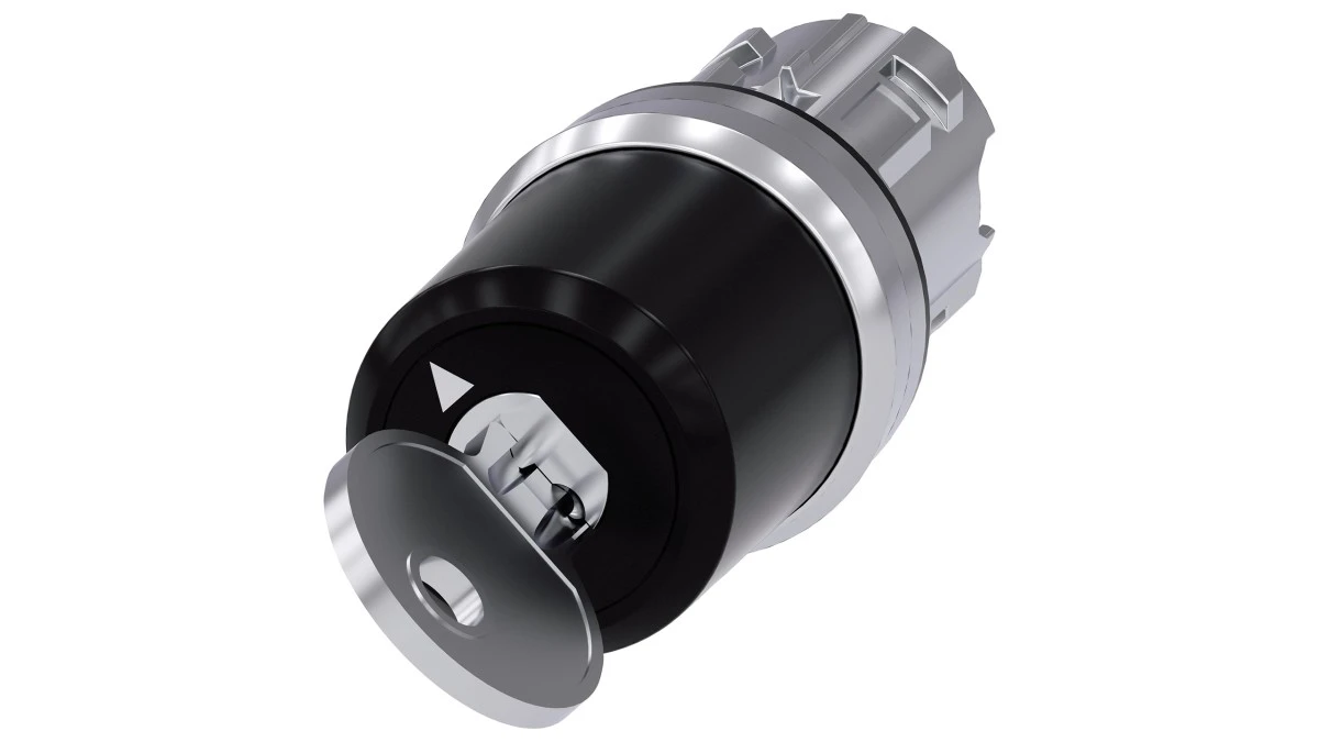 Przełącznik z kluczem Siemens 22mm okrągły metal błyszczący nr zamka SSG10 2 poz. O-I monost. kąt zał. 90st. 3SU1050-5BF11-0AA0