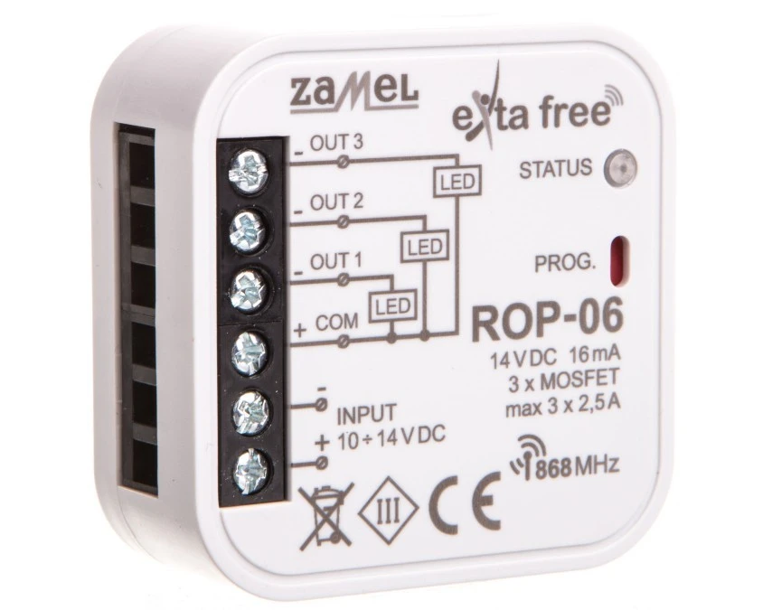 Odbiornik ROP-04 3-kanałowy 12V Radiowy dopuszkowy ZAMEL Ledix, 3x2,5A