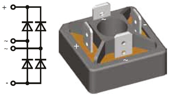 16. Moduł prostownika mostkowego Jednofazowy 38A 1200V Połączenie silikonowe FO-A 123.72 x10