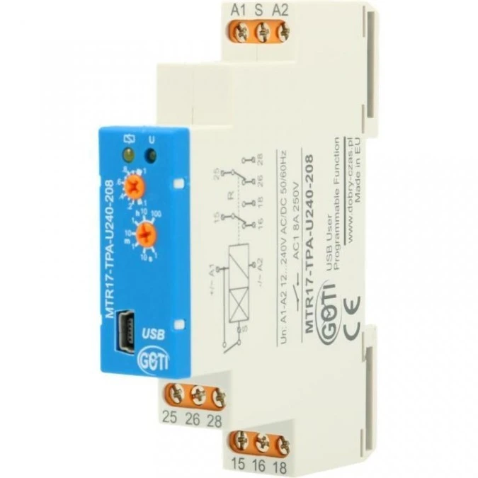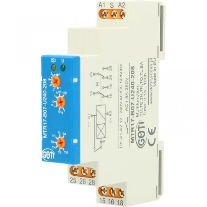 Przekaźnik czasowy 12-240VAC/DC styki 2Px8A AC1 MTR17-TPA-U240-208