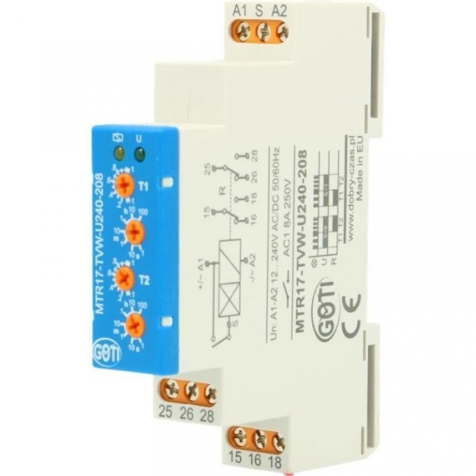 Przekaźnik czasowy styki 2Px8A AC1 12-240VAC/DC MTR17-TVW-U240-208