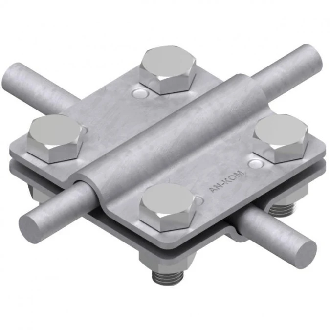 3. Złącze krzyżowe odgromowe DUŻE 2P (62x62mm, dwie płytki, 4xM8) ocynk galwaniczny drut bednarka AN-KOM 8.85