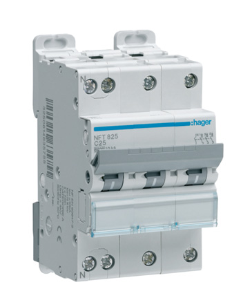 6. Wyłącznik nadprądowy MCB, 3+N, 25A, 415V, na szynę DIN, Hager, NFT 899.40