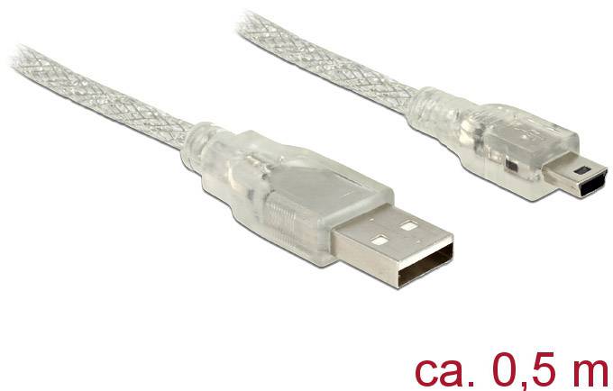 Kabel Delock USB 2.0 typu a - złącze męskie mini-B USB 2.0, 0,5 m, przezroczysty