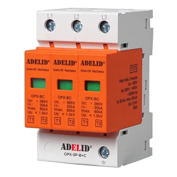 Ogranicznik przepięć SPD 3-fazowy B+C (Typ 1+2) 4P 4kA + 30kA/60kA ADELID
