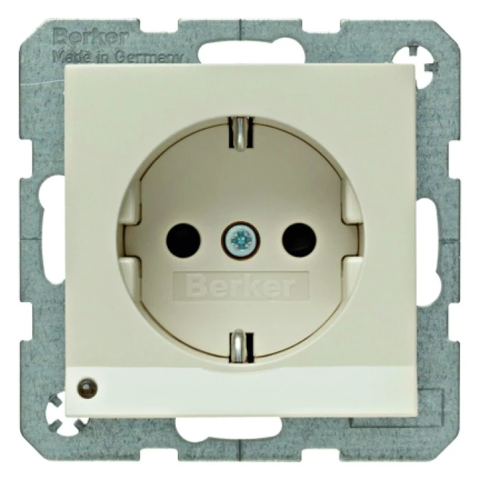 6. Gniazdo SCHUKO z podświetleniem orientacyjnym Berker B.Kwadrat kremowy połysk 41098982 340.61