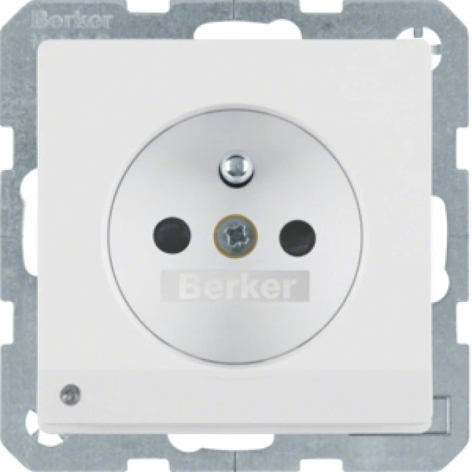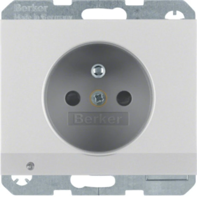 1. BERKER K.1 Gniazdo pojedyncze z uziemieniem i podświetleniem orientacyjnym LED biały połysk 6765107009 HAGER 302.27