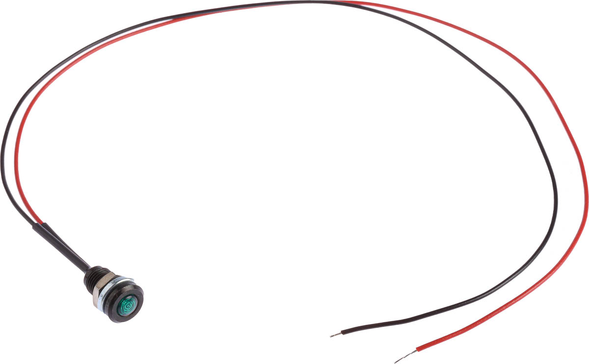 6. Lampka kontrolna do montażu panelowego, zielona 10.2mm LED Czarny Wyprowadzenia Oxley 74.72