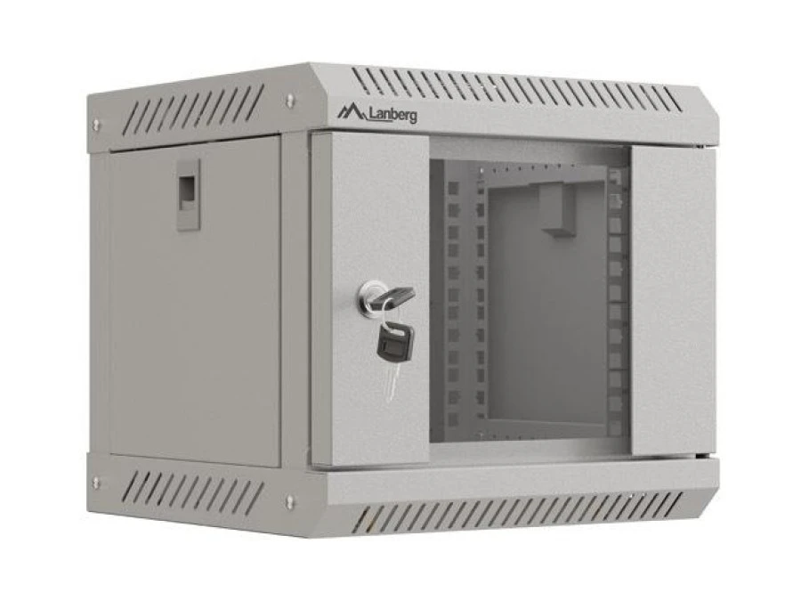 6. Szafa instalacyjna RACK wisząca 10 6U 300X300 szara drzwi przeszklone LANBERG (FLAT PACK) WF11-3306-10S 175.55