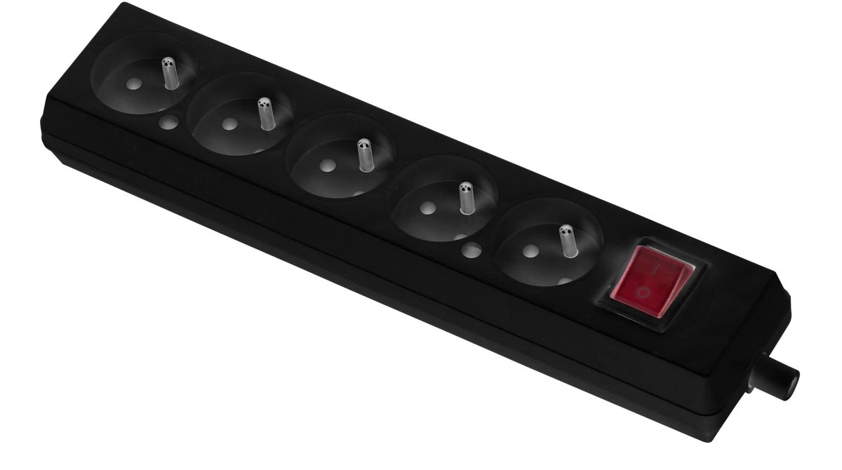 Gniazdo Przenośne Pięciokrotne 16A 2P 250V Z Wyłącznikiem Czarne Gn-560Ws