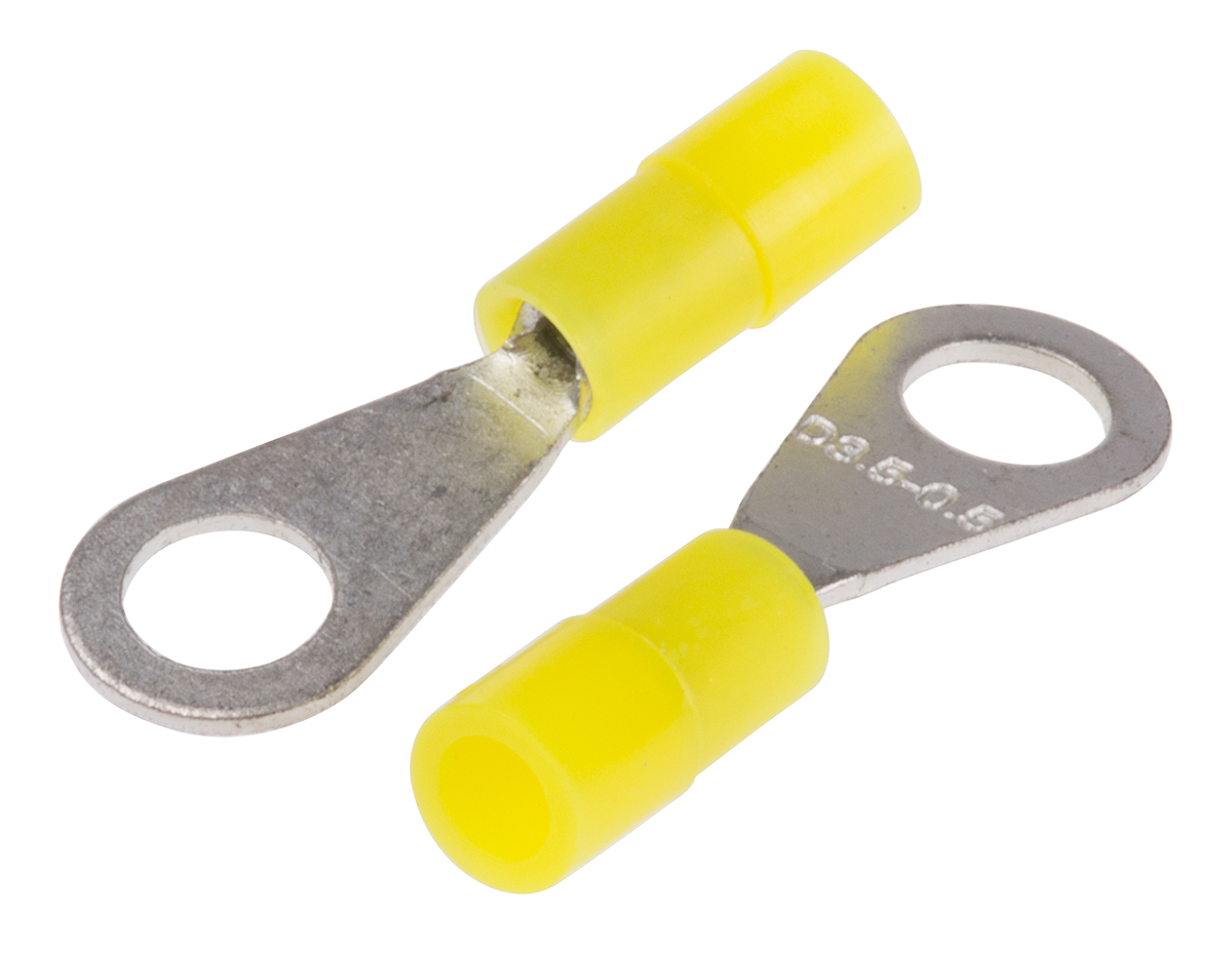 Zacisk oczkowy rozmiar przewodu 0.5mm² Ø , M3.5 izolowany średnica wew 3.7mm Żółty RS PRO