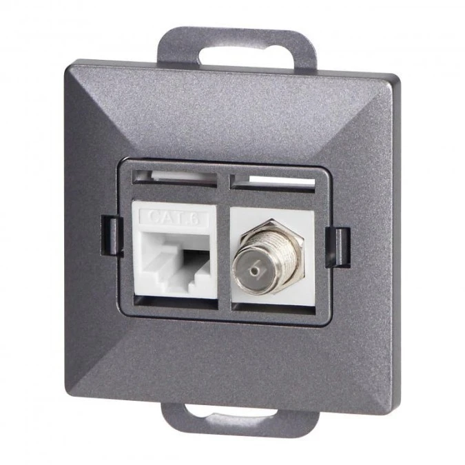 Gniazdo pojed. typu F + Gniazdo 1xRJ45 Cat6 Pearl, TV/F+RJ45/P, antracyt,OR-OE-7718/A