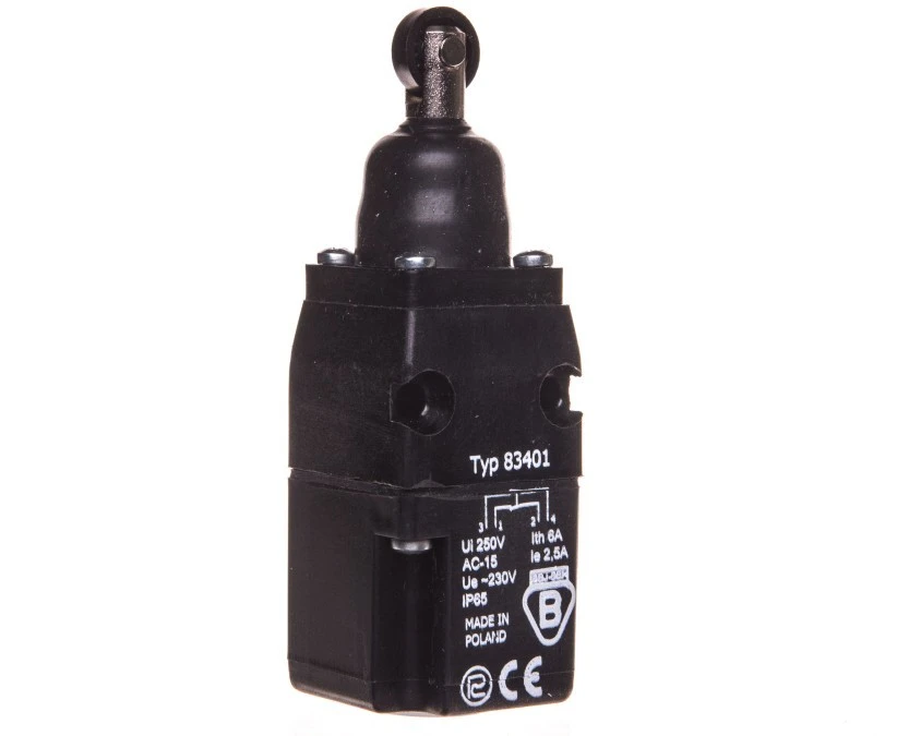 Wyłącznik krańcowy 1Z 1R w obudowie z głowicą pionową z popychaczem i rolką 83401 W0-59-651046