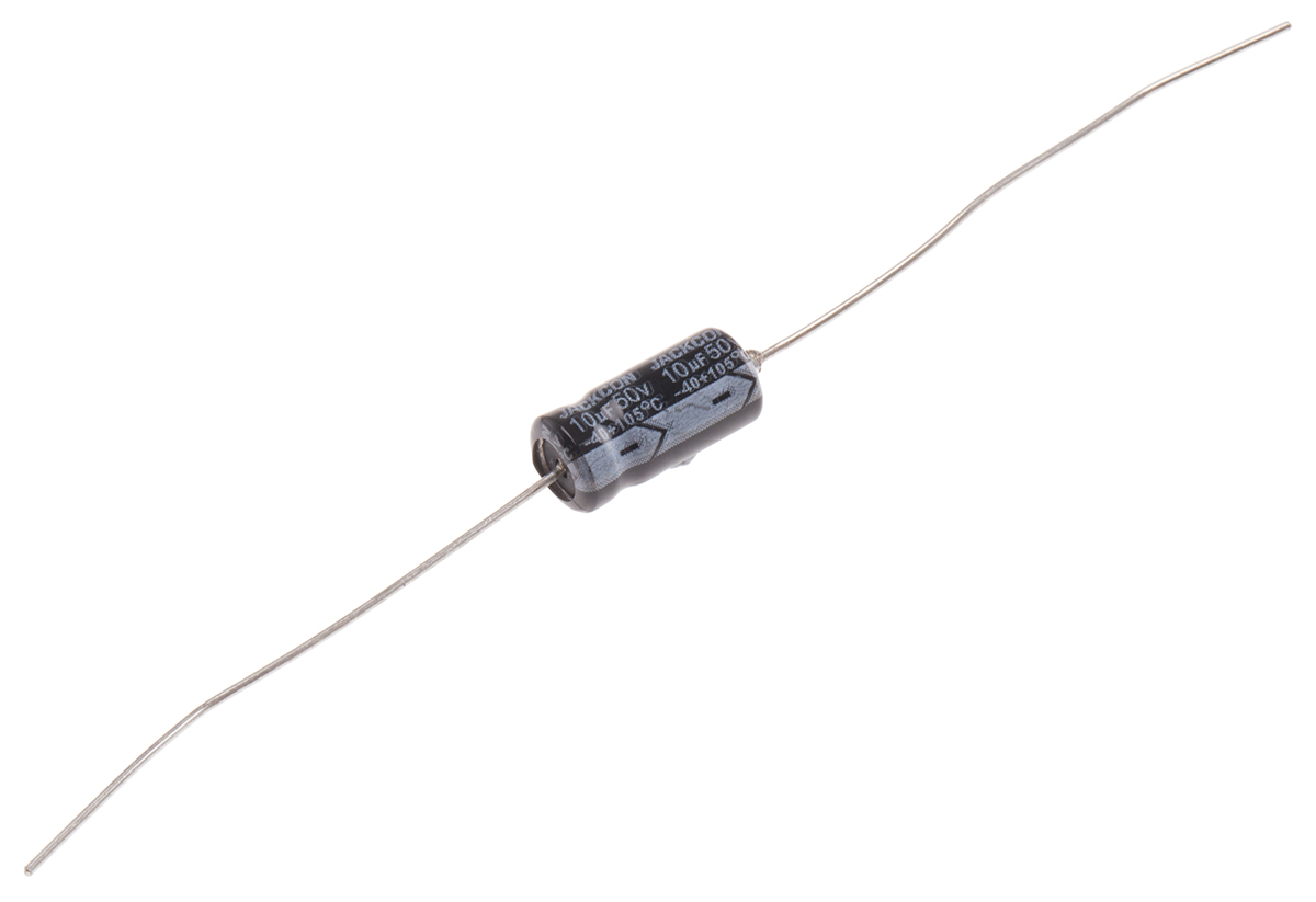 Kondensator 10μF 50V dc Osiowy, Otwór przelotowy RS PRO 6 (Dia.) x 13mm