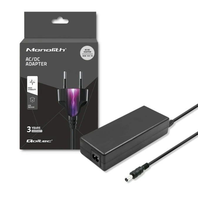 Qoltec Zasilacz desktopowy 84W 12V 7A 5.5*2.1 +kabel zasilający