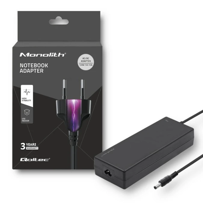 8. Qoltec Zasilacz desktopowy 120W 12V 10A 5.5*2.5 + kabel zasilający 104.92