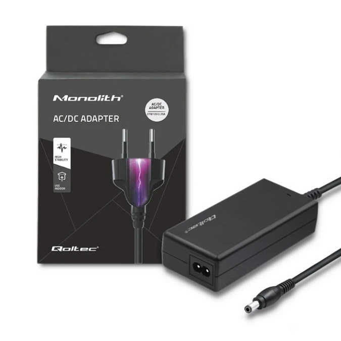 10. Qoltec Zasilacz desktopowy 27W 12V 2.25A 6.0*3.0 +kabel zasilający 22.84