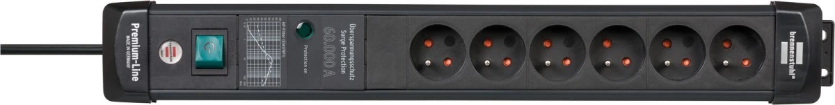 Premium-Line 60.000A listwa przepieciowa 6-gniazda czarna 3m H05VV-F 3G1,5 *BE