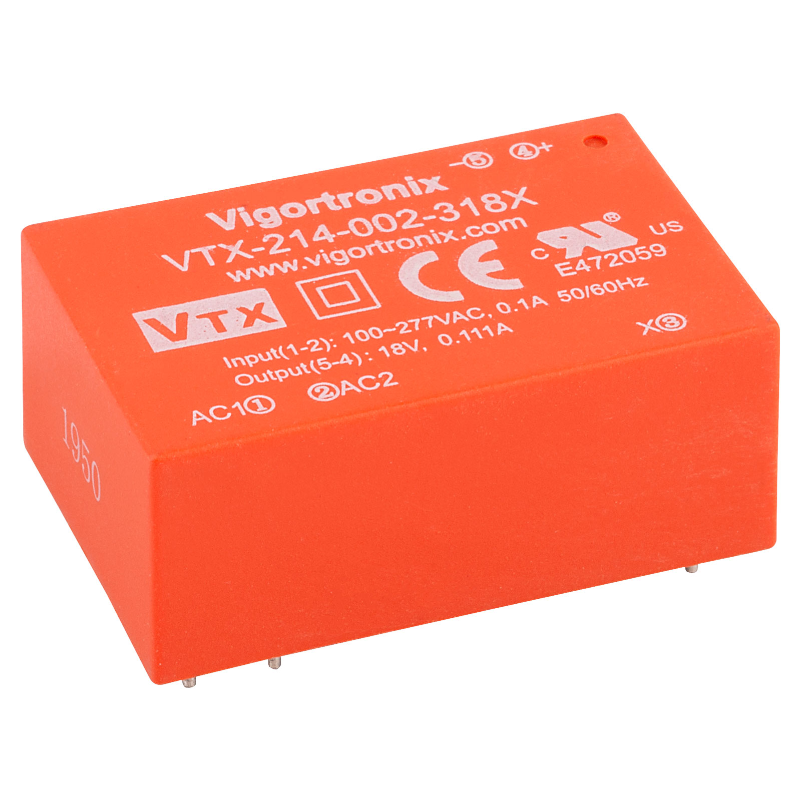Vigortronix VTX-214-002-318X 2W HIGH PERFORMANCE AC-DC CONVERTER 85-305V - 18V