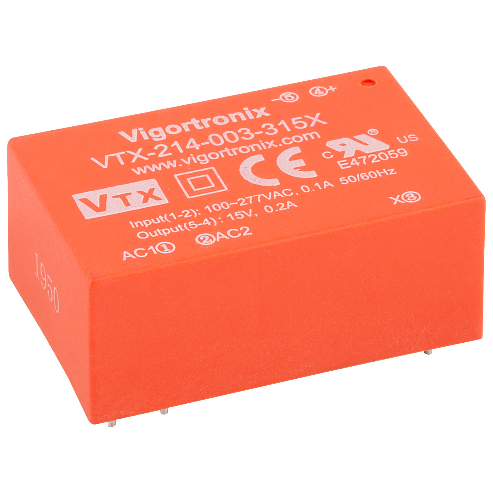 Vigortronix VTX-214-003-315X 3W HIGH PERFORMANCE AC-DC CONVERTER 85-305V - 15V