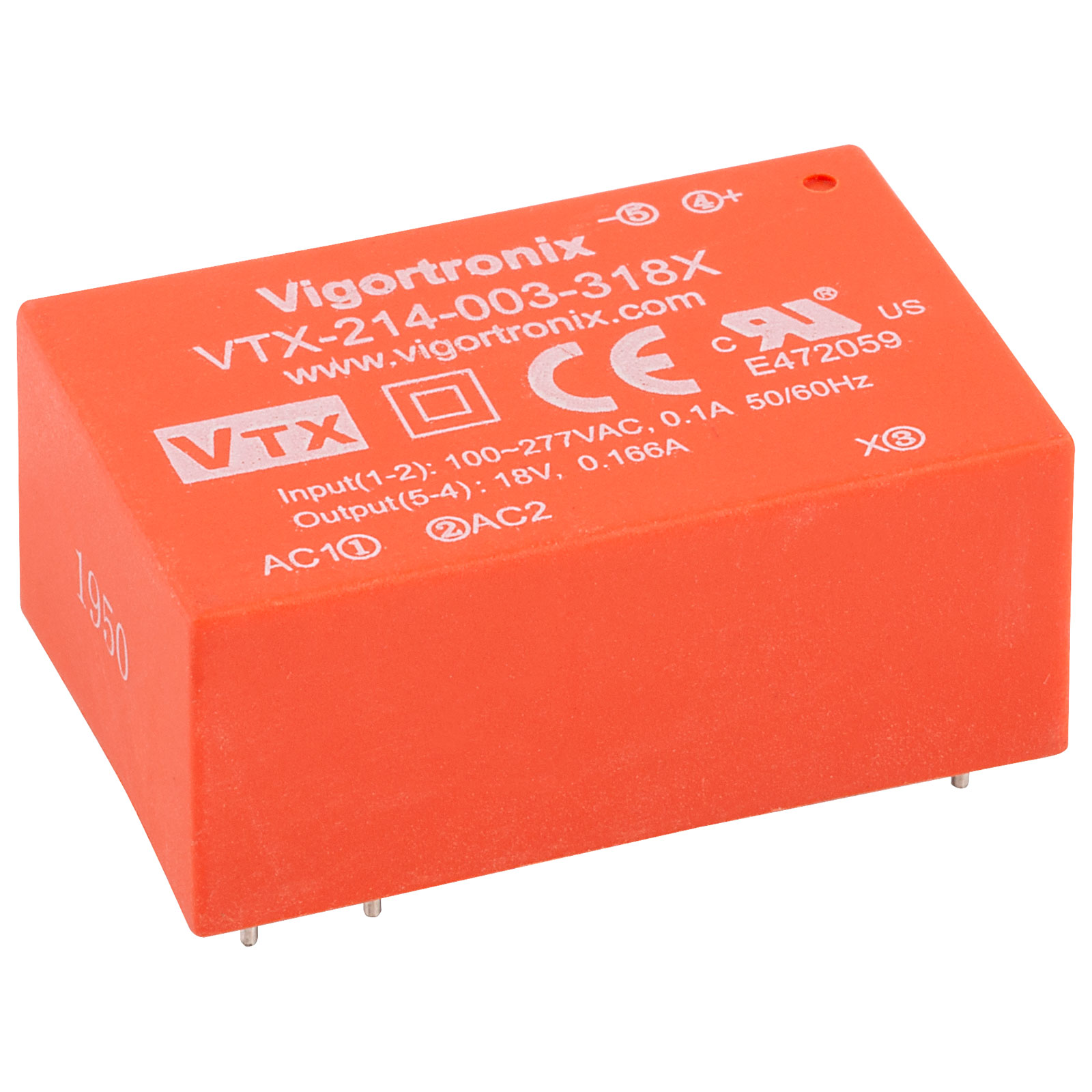 Vigortronix VTX-214-003-318X 3W HIGH PERFORMANCE AC-DC CONVERTER 85-305V - 18V