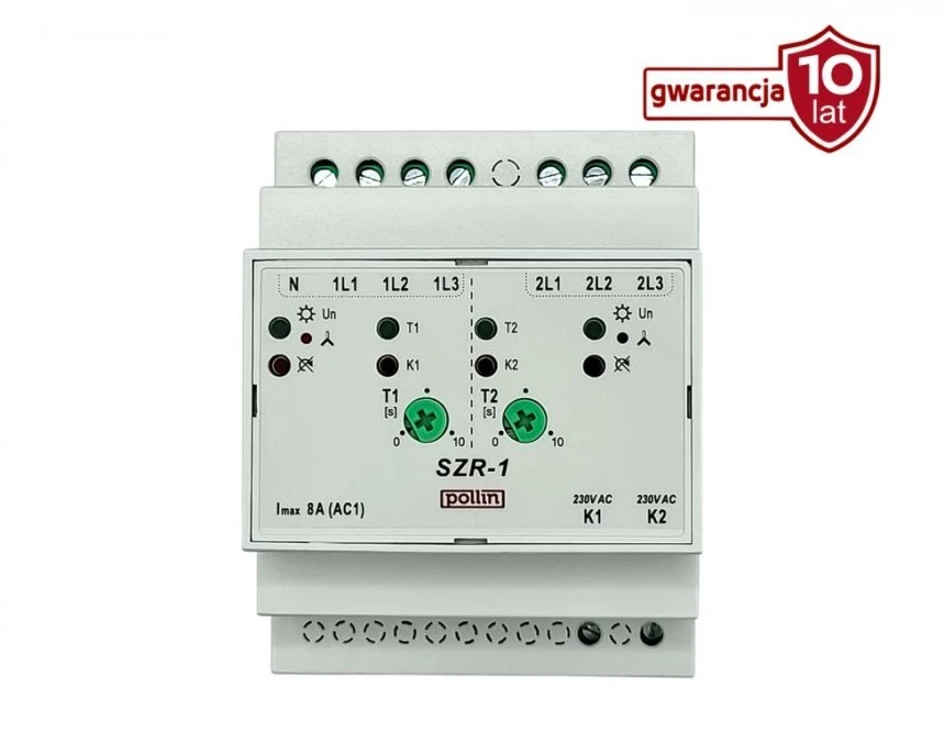 Sterownik układu SZR, 3P, regulacja czasu przerwy przełączania 0,1 - 10s SZR-1