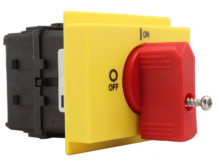 9. Łącznik krzywkowy 0-1 4P 32A IP30 na szynę żółto/czerwony bez blokady ML032.4-DIN/RG1 80.98