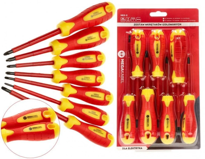 Zestaw śrubokrętów wkrętaków izolowanych DLA ELEKTRYKA 7 sztuk TPR-1 MEGAKABEL